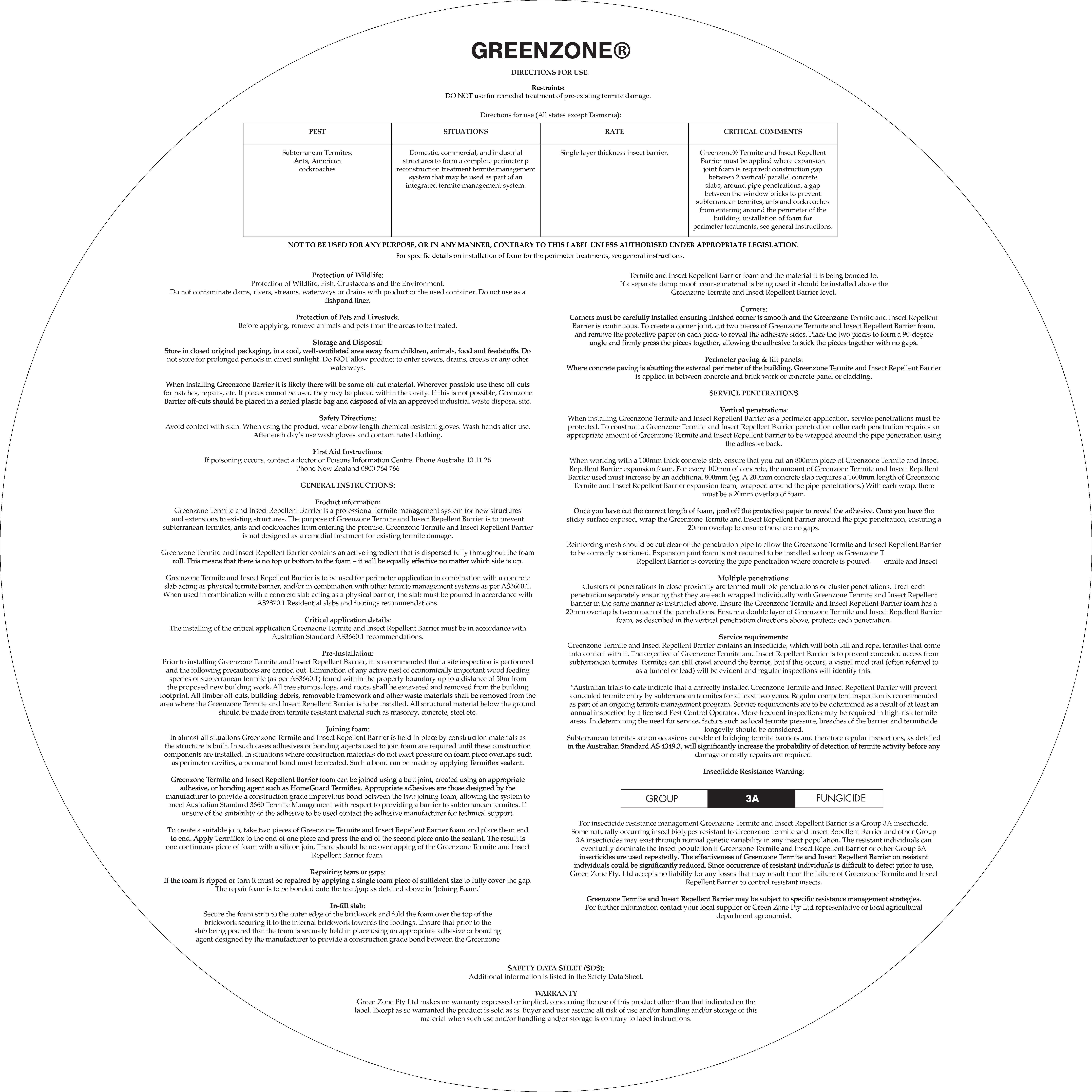 • GREENZONE® termite barrier meets the legislative requirements of local government across Victoria and in other states of Australia other than Tasmania.